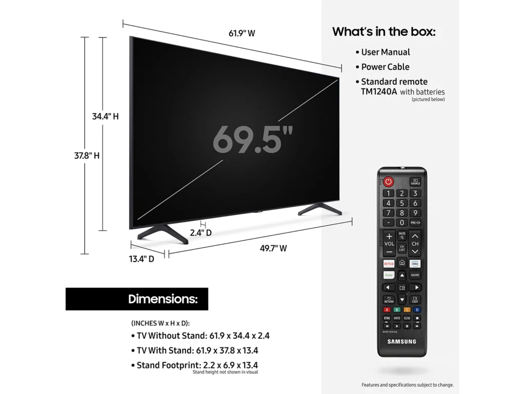 Previous Next Listing Categories: Electronics TelevisionsListing Tags: 65" TV ProfilePhotosMapReviewsSamsung 70″ Smart TV. This is a Business Class TV. Comes with a remote and wall mount. Model #: UN70TU7000 Loading... No Records Found Sorry, no records were found. Please adjust your search criteria and try again. Maps failed to load Sorry, unable to load the Maps API. Enter your locationGet Directions Travel modeDrivingWalkingBicyclingPublic Transport Distance unitsMilesKilometers Next